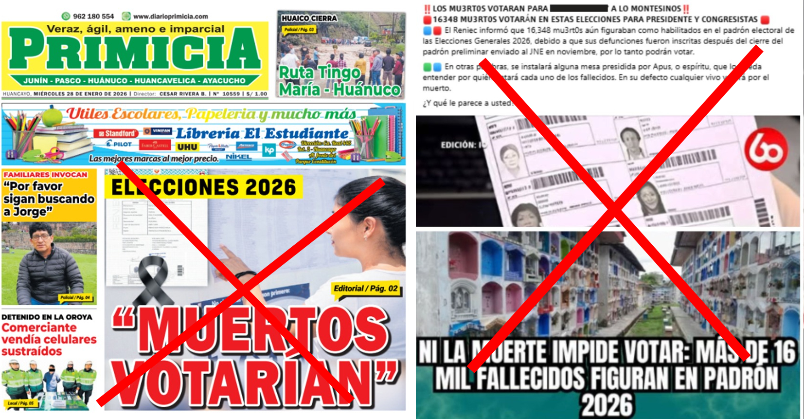 La presencia de nombres de ciudadanos fallecidos en el padrón electoral desencadenó publicaciones que intentan desinformar a la ciudadanía. Sin embargo, esta situación se debe a que las actas de defunción se registraron después del cierre y la aprobación del padrón para las Elecciones Generales 2026.