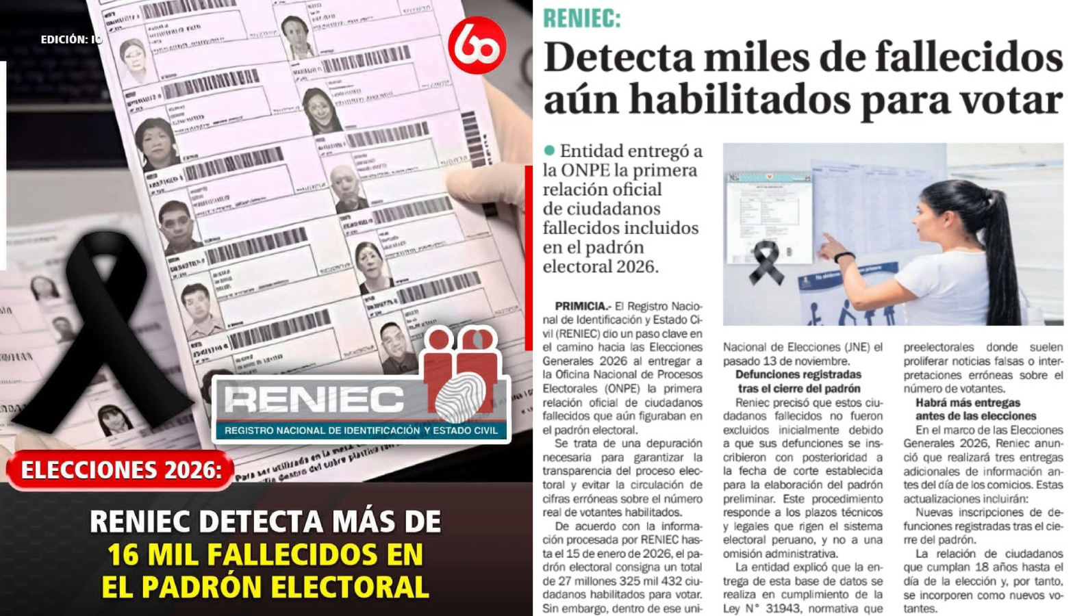 El 19 de enero, Reniec remitió una lista de más de 16 000 personas fallecidas cuyos decesos fueron registrados después del envío del padrón preliminar. El 2 de febrero se añadieron 6 000 registros más. Estas remisiones responden a dos modificaciones al artículo 202 de la LOE, aprobadas en 2023 y 2025, que establecen la remisión mensual a la ONPE con los nombres de los fallecidos de las actas de defunción ingresadas.